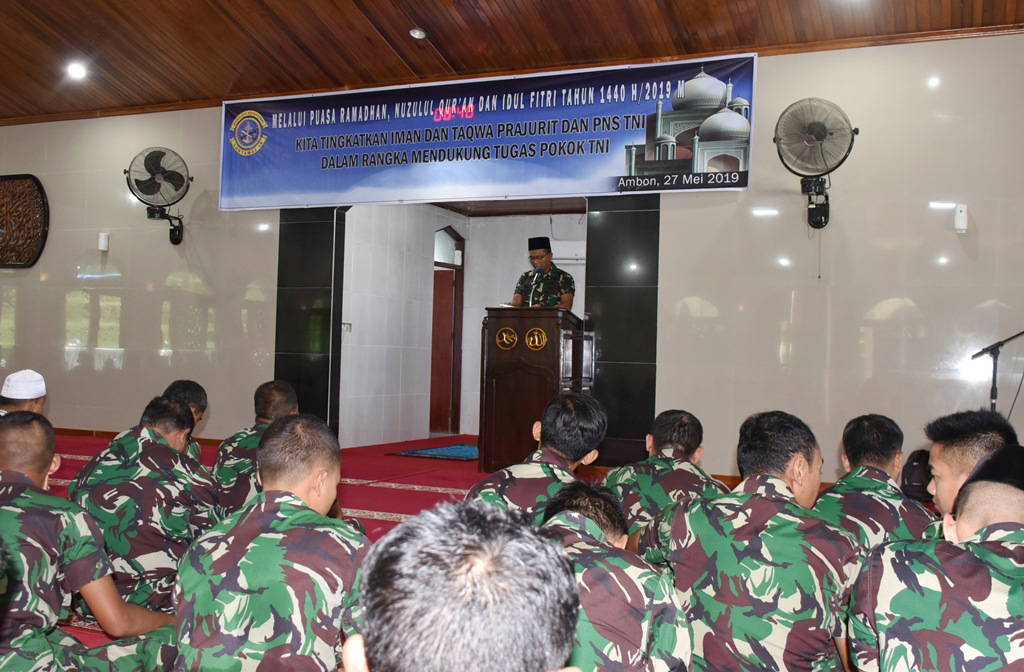 AMBON – Jajaran Pangkalan Utama TNI Angkatan Laut (Lantamal) IX Ambon memperingati Nuzulul Quran 1440 Hijriah di Masjid Nurul Iman Kompleks Lantamal Ambon, Senin (27/5/2019).