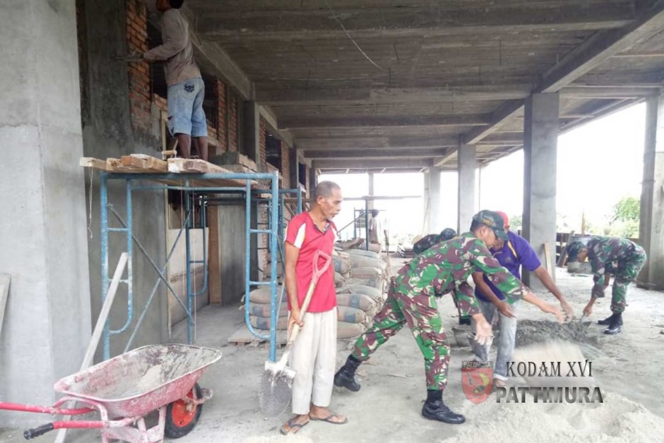 AMBON - Satgas Yonif Raider Khusus 136/Tuah Sakti membantu masyarakat mempercepat pembangunan Masjid Al-Mujahirin yang terletak di Dusun Ory, Negeri Pelauw, Kecamatan Pulau Haruku, Kabupaten Maluku Tengah.