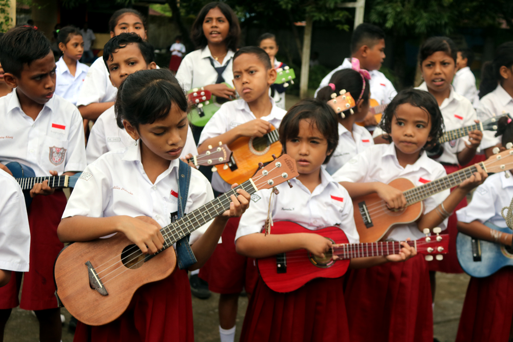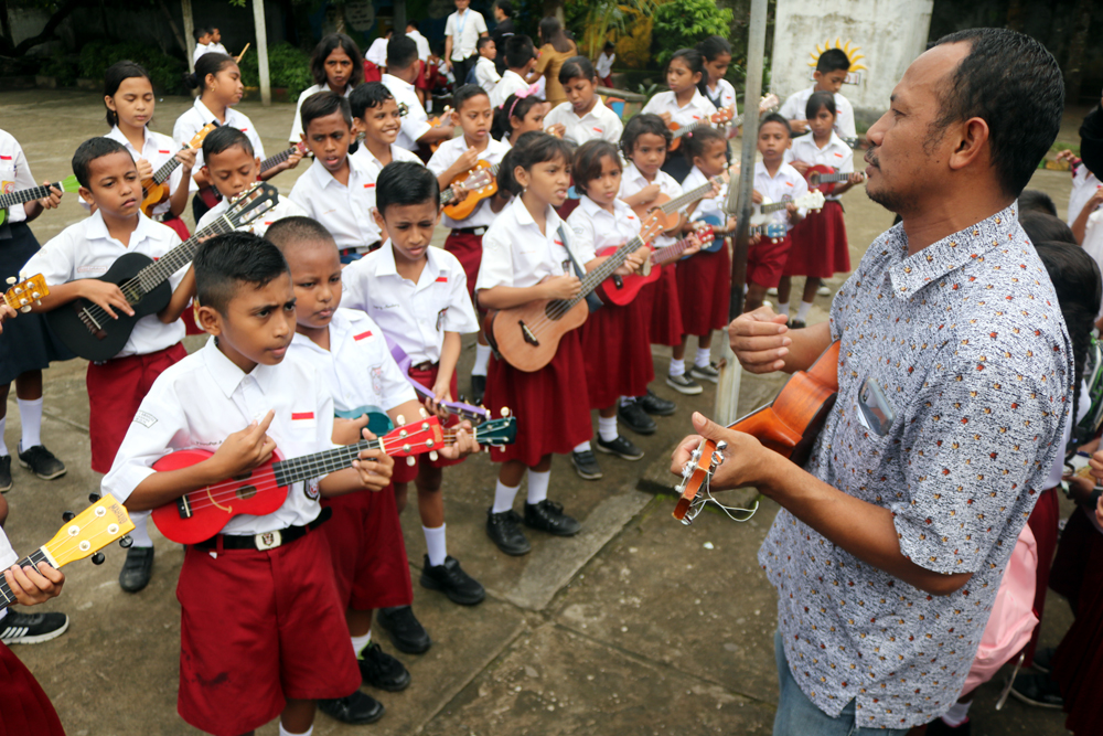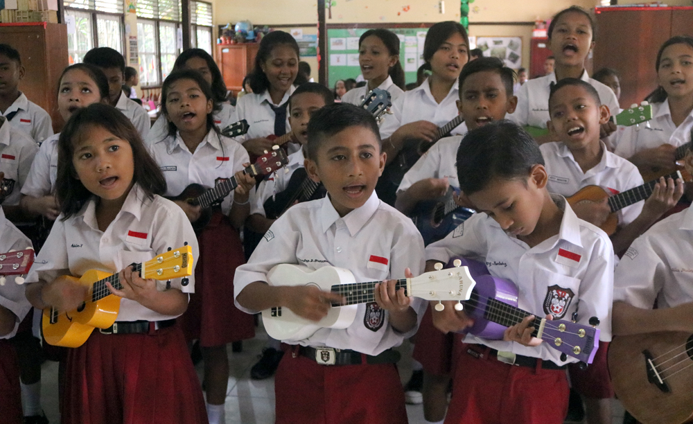 “Nantinya dengan program ini kita bukan hanya latih para siswa bermain ukulele namun juga termasuk para guru,” katanya.