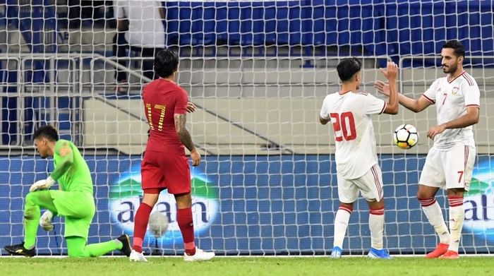 Laga UEA vs Indonesia dalam lanjutan Kualifikasi Piala Dunia 2022 digelar di Al Maktoum Stadium, Dubai, Kamis (10/10/2019) malam. Indonesia babak belur dan kalah telak 0-5.