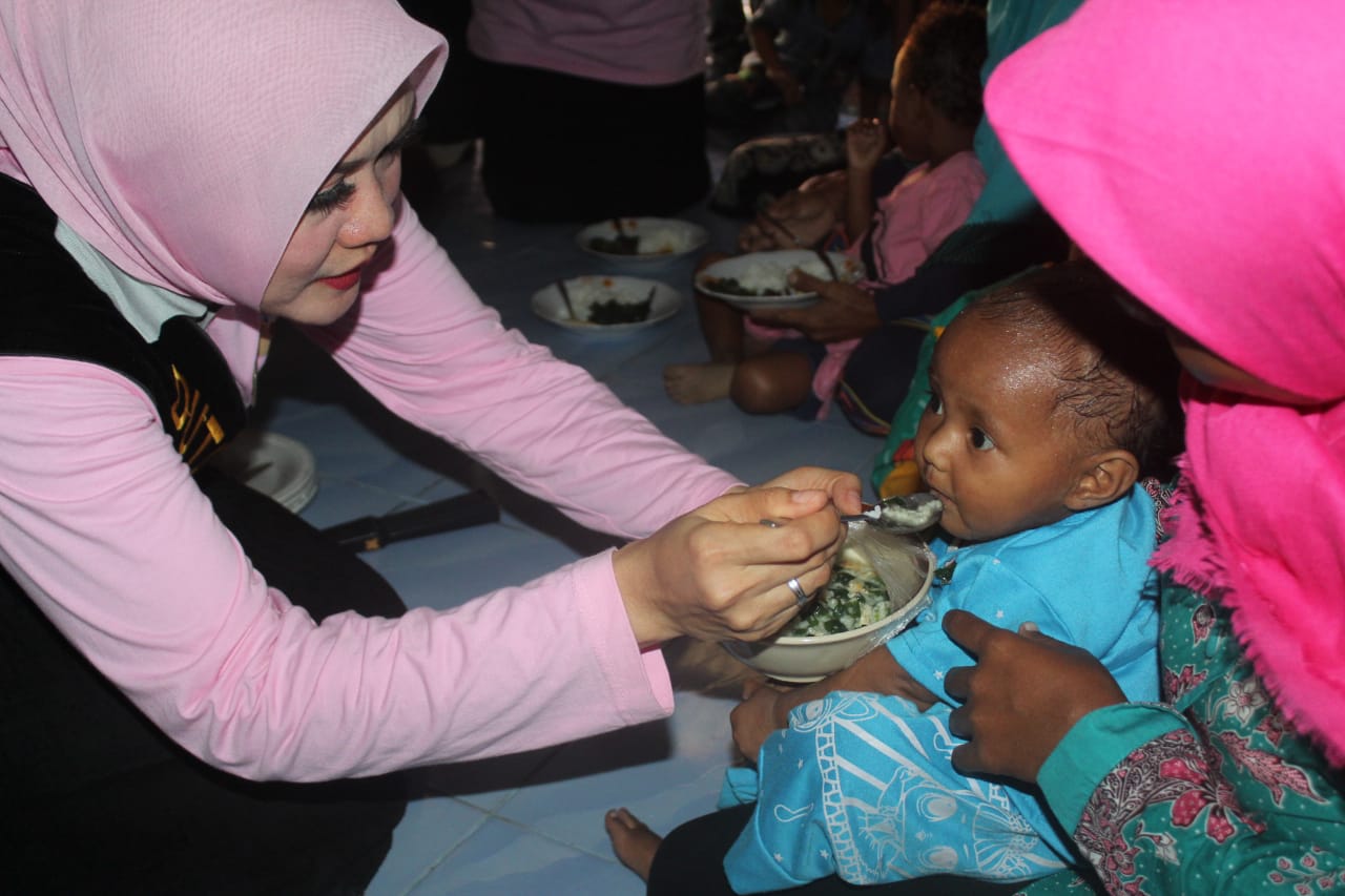 Saat mengunjungi Posyandu dan Posbinda di kedua desa, Duta Parenting Provinsi Maluku, Widya Murad Ismail memberikan edukasi secara praktis kepada orang tua dan ibu-ibu hamil tentang pentingnya asupan gizi seimbang. Ia juga duduk lesehan di lantai dan makan bersama anak-anak stunting.
