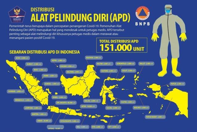 "Kemarin APD BNPB tiba dan hari ini baru sampai di Dinas Kesehatan. Sekarang sementar disiapkan untuk didistribusikan kepada kabupaten kota di Maluku," ungkapnya.