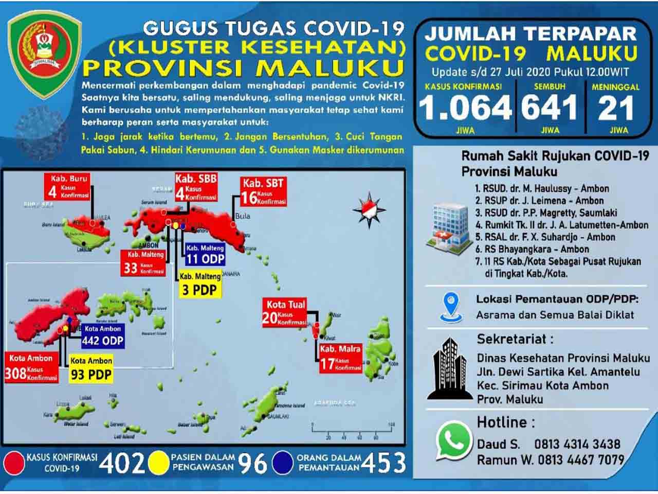 Update Covid-19 Di Maluku 27 Juli: Ada Lagi 18 Kasus Dari Ambon & Malteng