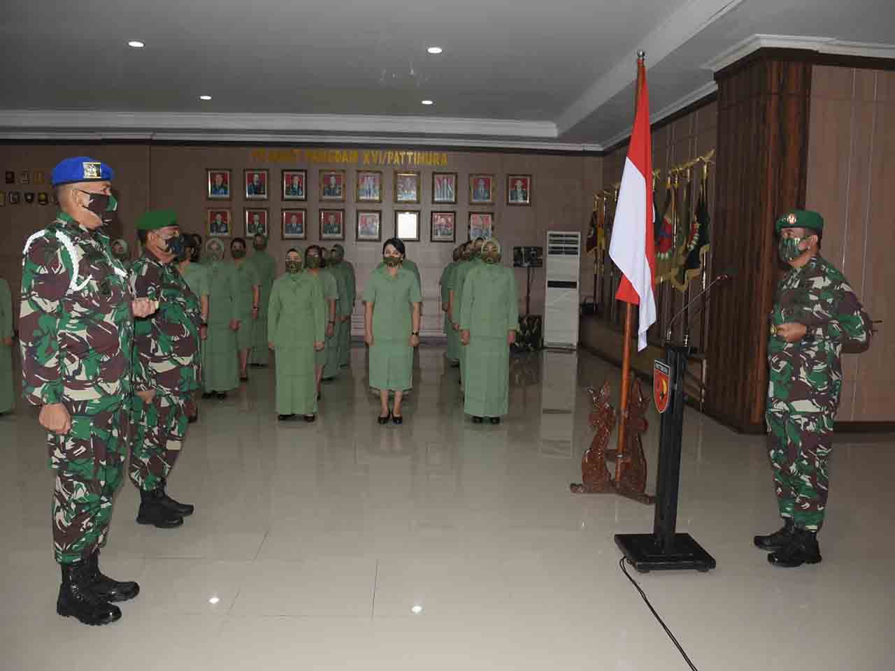 AMBON - Pangdam XVI/ Pattimura, Mayjen TNI Agus Rohman, memimpin langsung Laporan Korps Kenaikan Pangkat Perwira Kodam di Makodam Pattimura, Ambon, Kamis (1/10/2020).