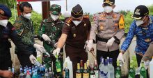 AMBON – Sebanyak 28.531 liter minuman keras (miras) tradisional jenis sopi dimusnahkan oleh jajaran Polda Maluku, Kamis (31/12/2020).