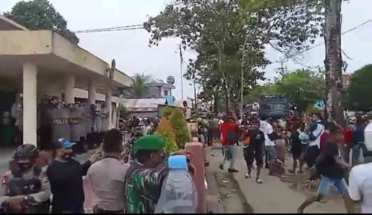 Puluhan personel dari Polres Kepulauan Aru yang dibantu Brimob dan Koramil 1503 Dobo tak mampu menghalau ribuan masyarakat.