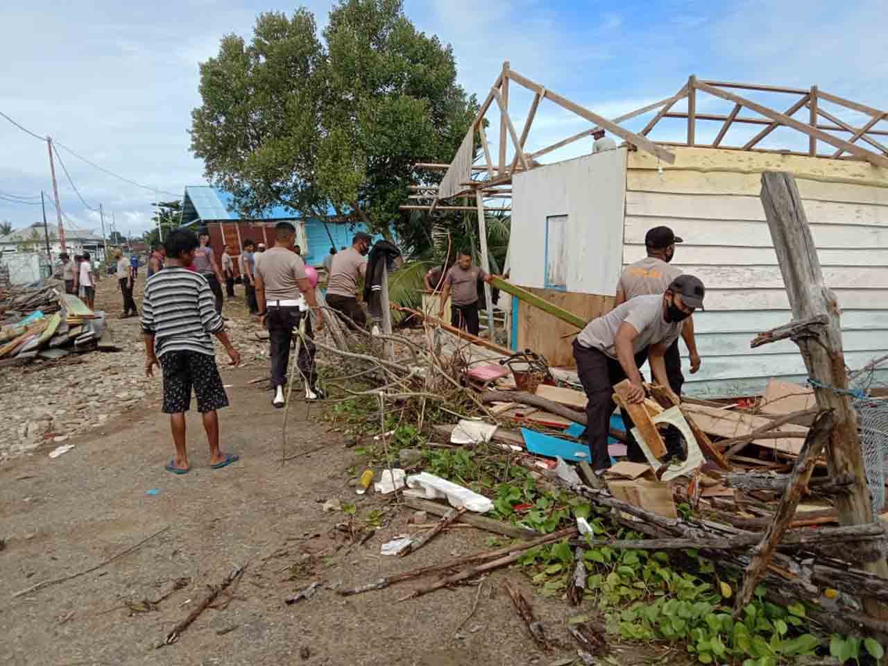 “Personel Polres SBT bersama masyarakat Desa Sesar membersihkan puing-puing bangunan rumah yang rusak akibat terkena dampak banjir rob. Kemudian pukul 10.00 WIT dilaksanakan pembersihan bangunan Pos dan Dermaga Polairud Polres SBT yang rusak akibat dihantam ombak," ungkap Kapolres.