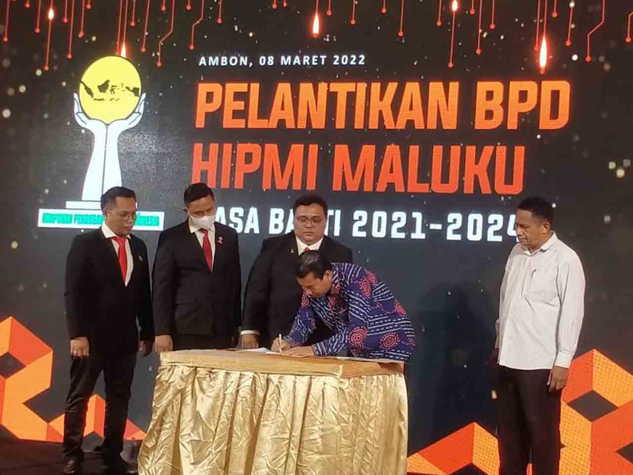 Penandatangan kesepakatan itu dilakukan usai pelantikan BPD HIPMI Maluku masa bakti 2021-2024 di Ambon, Selasa (8/3/2022).