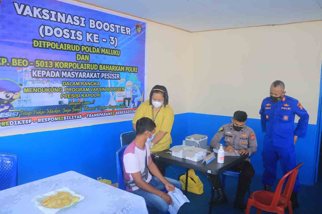 Direktur Polairud Polda Maluku, Kombes Pol Harun Rosyid mengatakan, kegiatan yang dilakukan secara serentak hari ini untuk mendukung program vaksin booster Presisi Kapolri.
