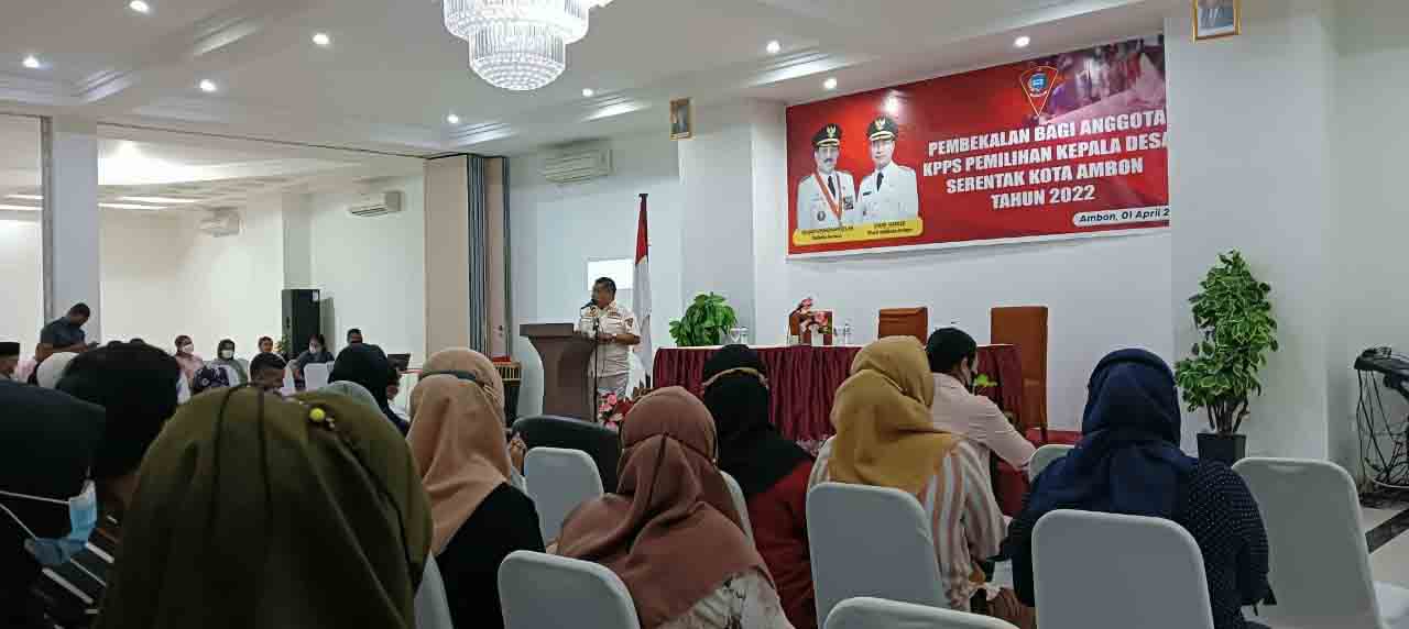 AMBON, MalukuTerkini.com - Pemerintah Kota (Pemkot) Ambon melaksanakan pembekalan bagi anggota Kelompok Penyelenggara Pemungutan Suara (KPPS) Pemilihan Kepala Desa (Pilkades) Serentak tahun 2022, yang berlangsung di Ambon, Jumat (1/4/2022).