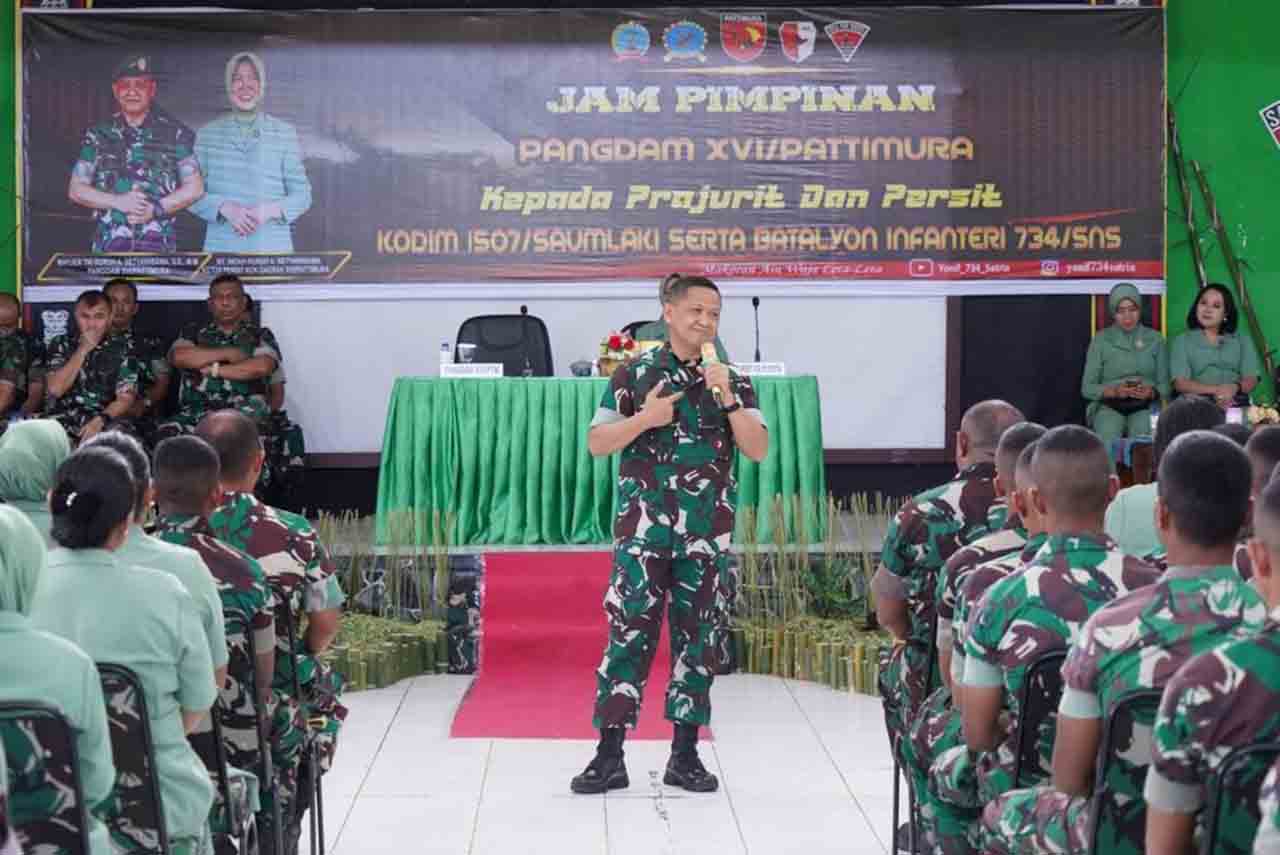 Selesai memberikan pengarahan kepada prajurit dan persit, Pangdam kemudian menuju Kodim 1507/Saumlaki.