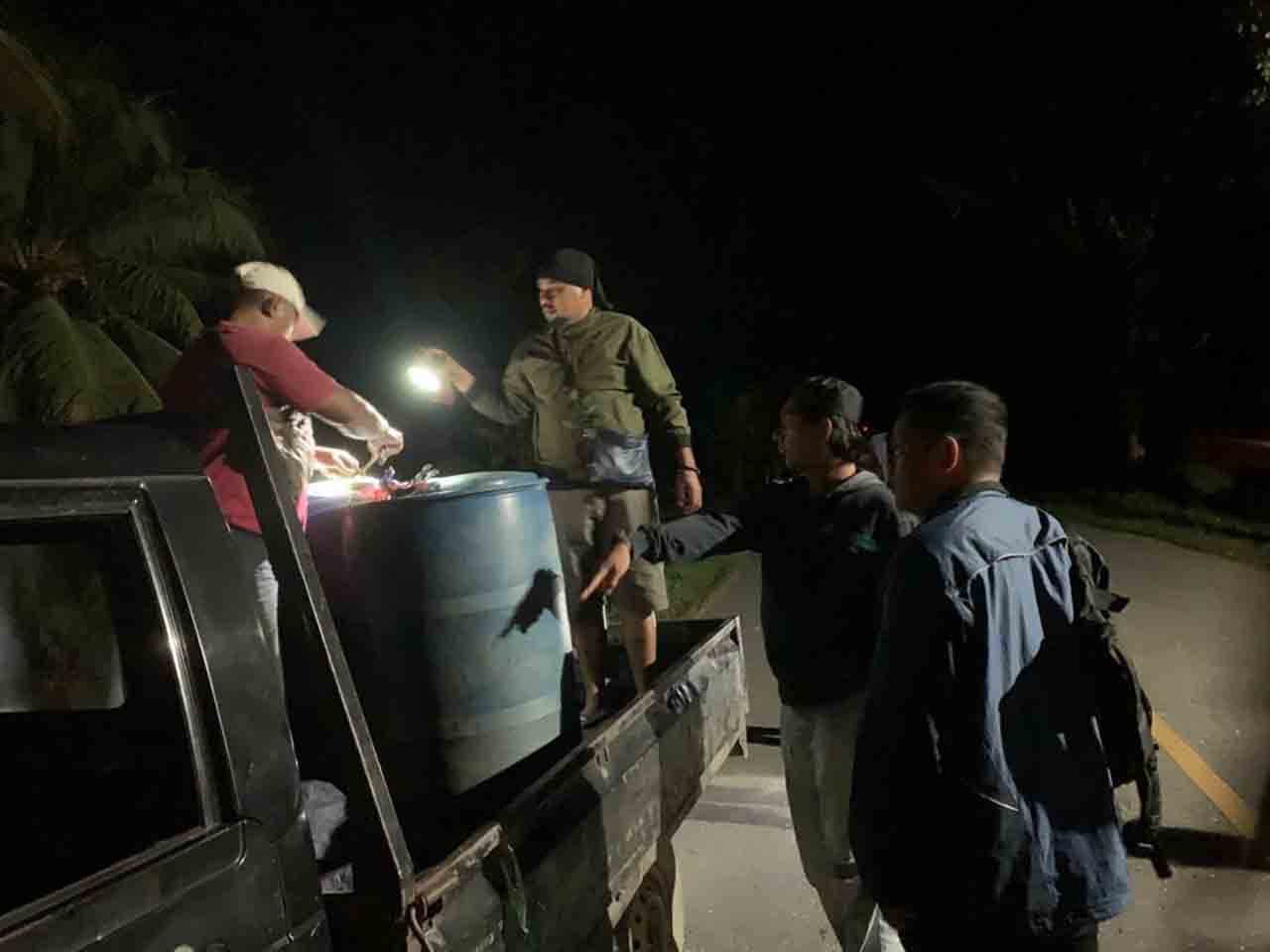"Setelah dilakukan pengecekan didapati bahwa benar terduga pelaku membawa dan mengangkut minyak tanah tanpa izin yang disimpan dalam 2 drum warna biru ukuran 200 Liter yang akan dijual di Unit 18 (Gunung Botak)," unkapnya.