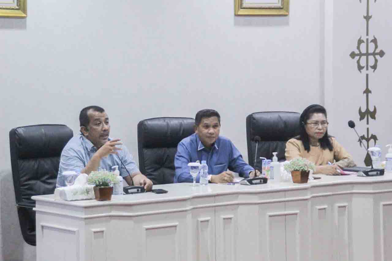 Pertemuan antara Koordinator Tim Korsupgah, Dian Ali dengan Penjabat Wali Kota Ambon Bodewin M Wattimena beserta OPD terkait, di Balai Kota Ambon, Jumat (8/12/2023).