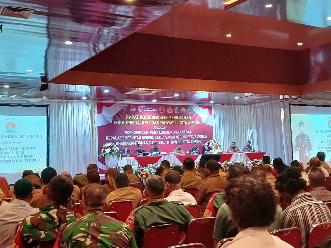 Rakor Pemerintahan itu dihadiri Forkopimda, KPU dan Bawaslu Kota Ambon bersama Forkopimcam, serta para lurah/raja/kades.