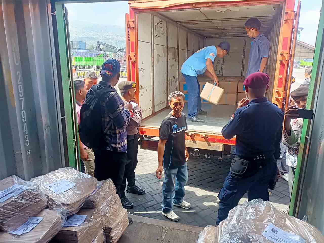 Pengamanan dan pengawalan logistik Pemilu 2024 itu dilakukan sejak proses pembongkaran kontainer di Pelabuhan Terminal Peti Kemas Ambon hingga ke daerah tujuan.