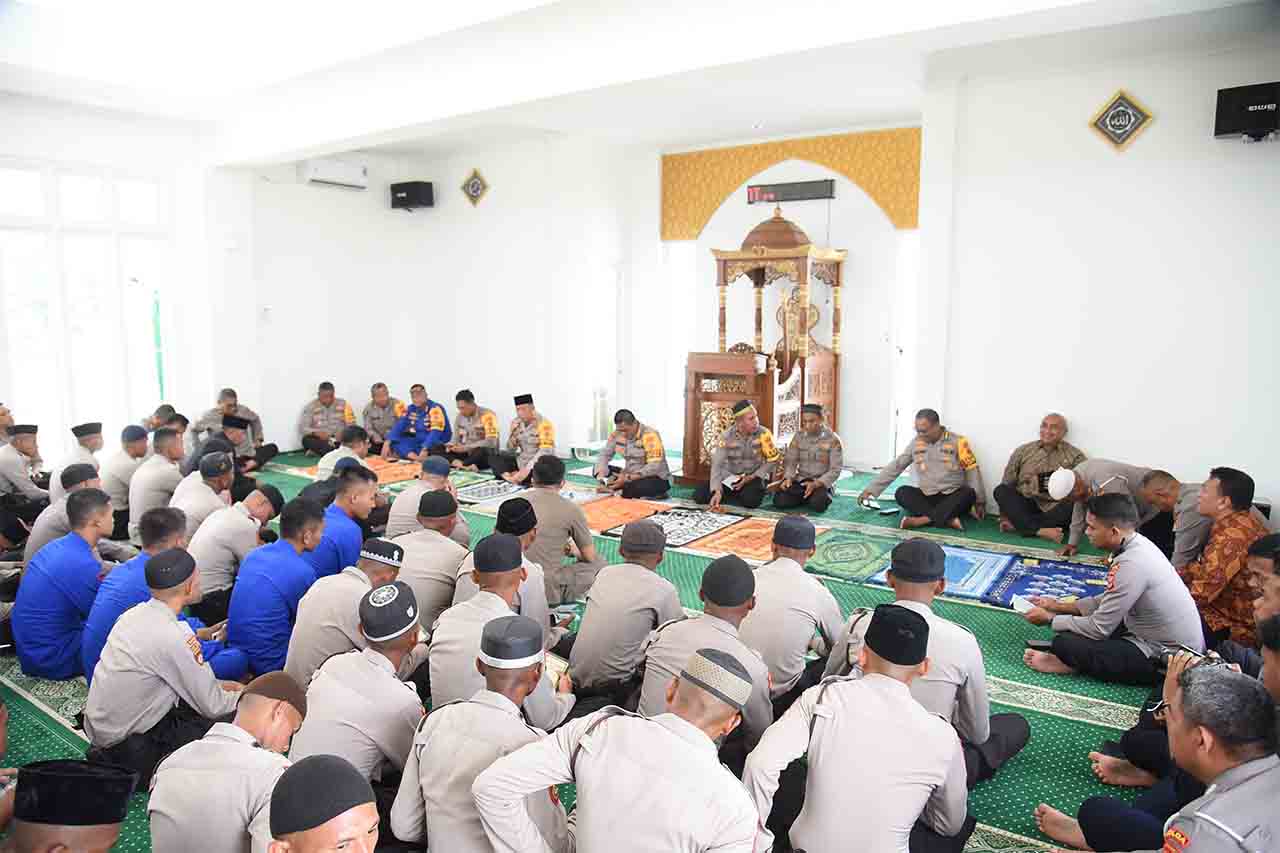 AMBON, MalukuTerkini.com - Sehari menjelang pemungutan suara pada Pemilihan Umum (Pemilu) 14 Februari 2024, Polda Maluku menggelar doa bersama yang digelar di Musala Ar Rahman, Mapolda Maluku, Selasa (13/2/2024).