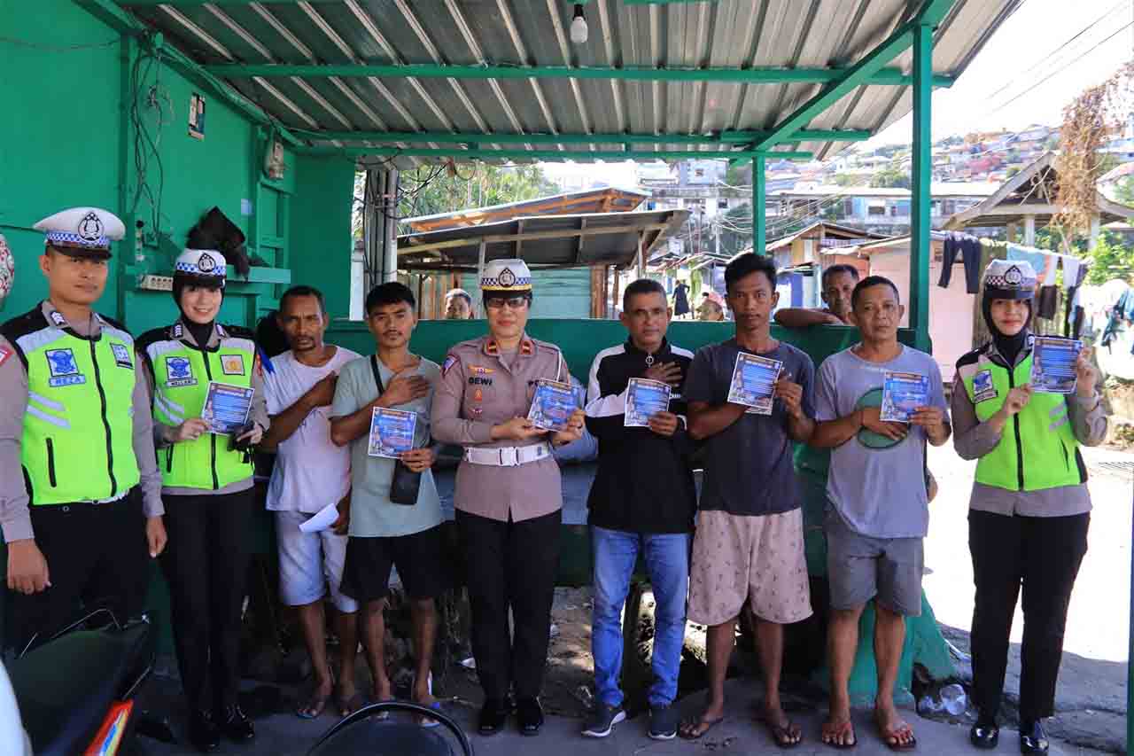 Saat menjalankan operasi, tampak personel Ditlantas Polda Maluku memberikan imbauan dan membagikan brosur berisi imbauan keselamatan berlalu lintas kepada warga.