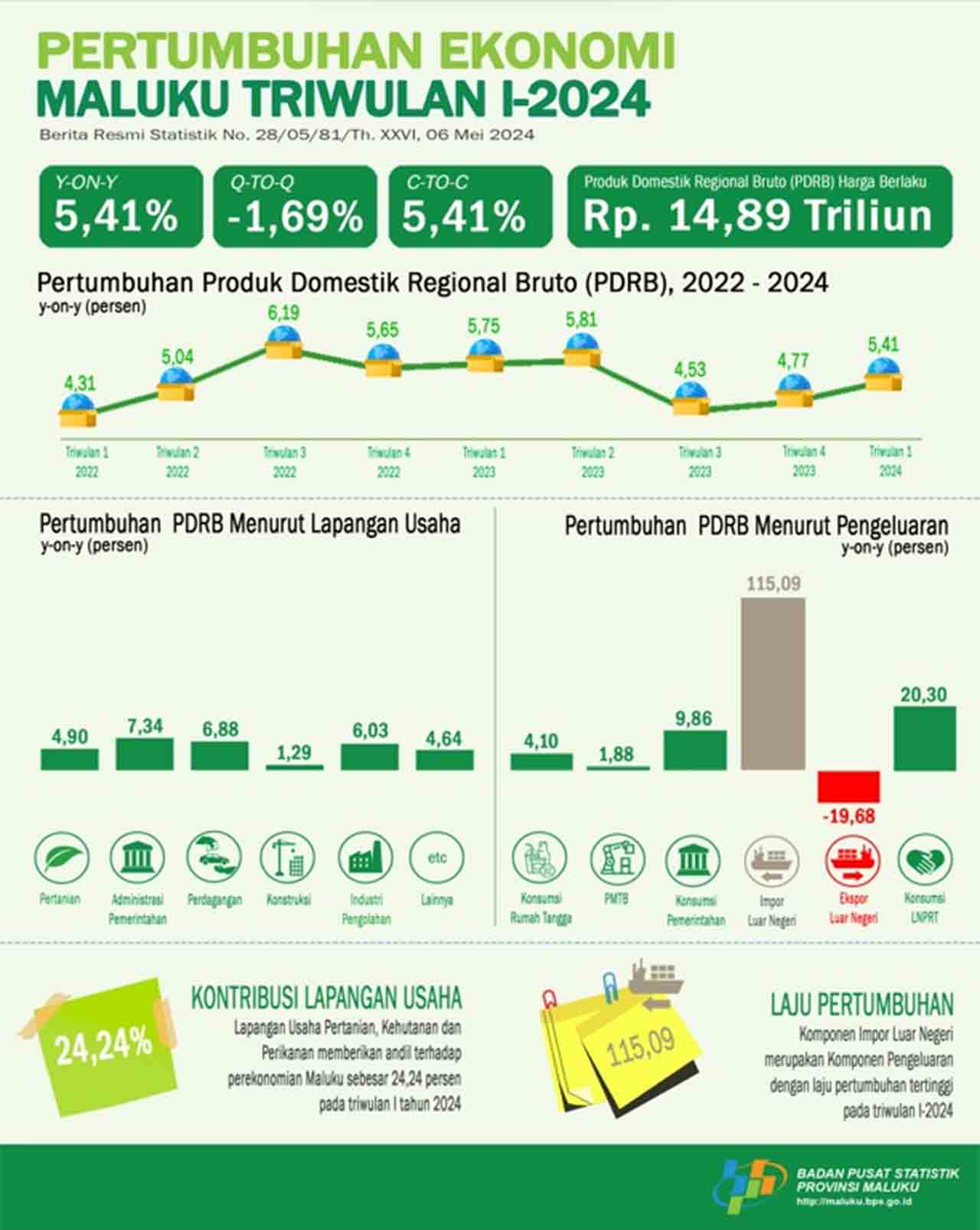 Ekonomi Maluku Triwulan I/2024 Tumbuh 5,41%