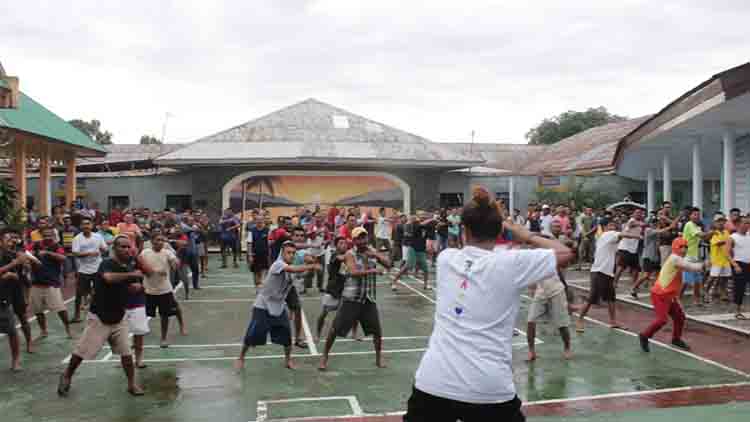 AMBON, MalukuTerkini.com - Rumah Tahanan Negara (Rutan) Kelas IIA Ambon Kantor Wilayah Kemenkumham Maluku melaksanakan senam bersama warga binaan yang bertempat di lapangan blok hunian Rutan Ambon, Jumat (28/6/2024).