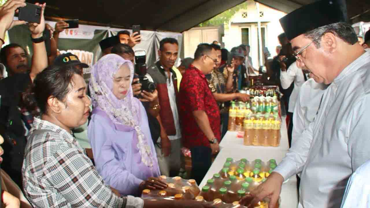 Gubernur dan Wakil Gubernur menyambangi stand Pasar Murah dan membeli beberapa bahan pokok (bapok) seperti bawang merah, minyak goreng maupun biskuit yang diserahkan kepada Raja Negeri Hitulama untuk nantinya dibagikan kepda masyarakat.