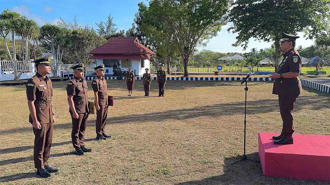 Kepala Kejaksaan Negeri Kabupaten Kepulauan Tanimbar, Adi Imanuel Palebangan, selaku inspektur upacara menyampaikan Tri Krama Adhyaksa menjadi pedoman bagi seluruh insan Adhyaksa dalam melaksanakan tugas sebagai Aparatur Sipil Negara dan abdi hukum.