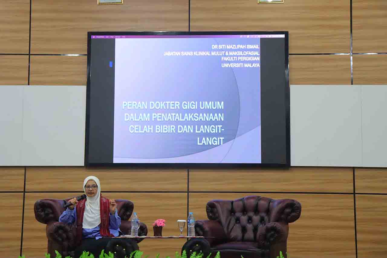 Siti Mazlipah yang meraih gelar FDSRCS dari Royal College of Surgeons, Inggris, pada tahun 1999 ini memberikan kuliah pakar bertajuk ‘Peran Dokter Gigi Umum dalam Penatalaksanaan Celah Bibir dan Langit-langit’