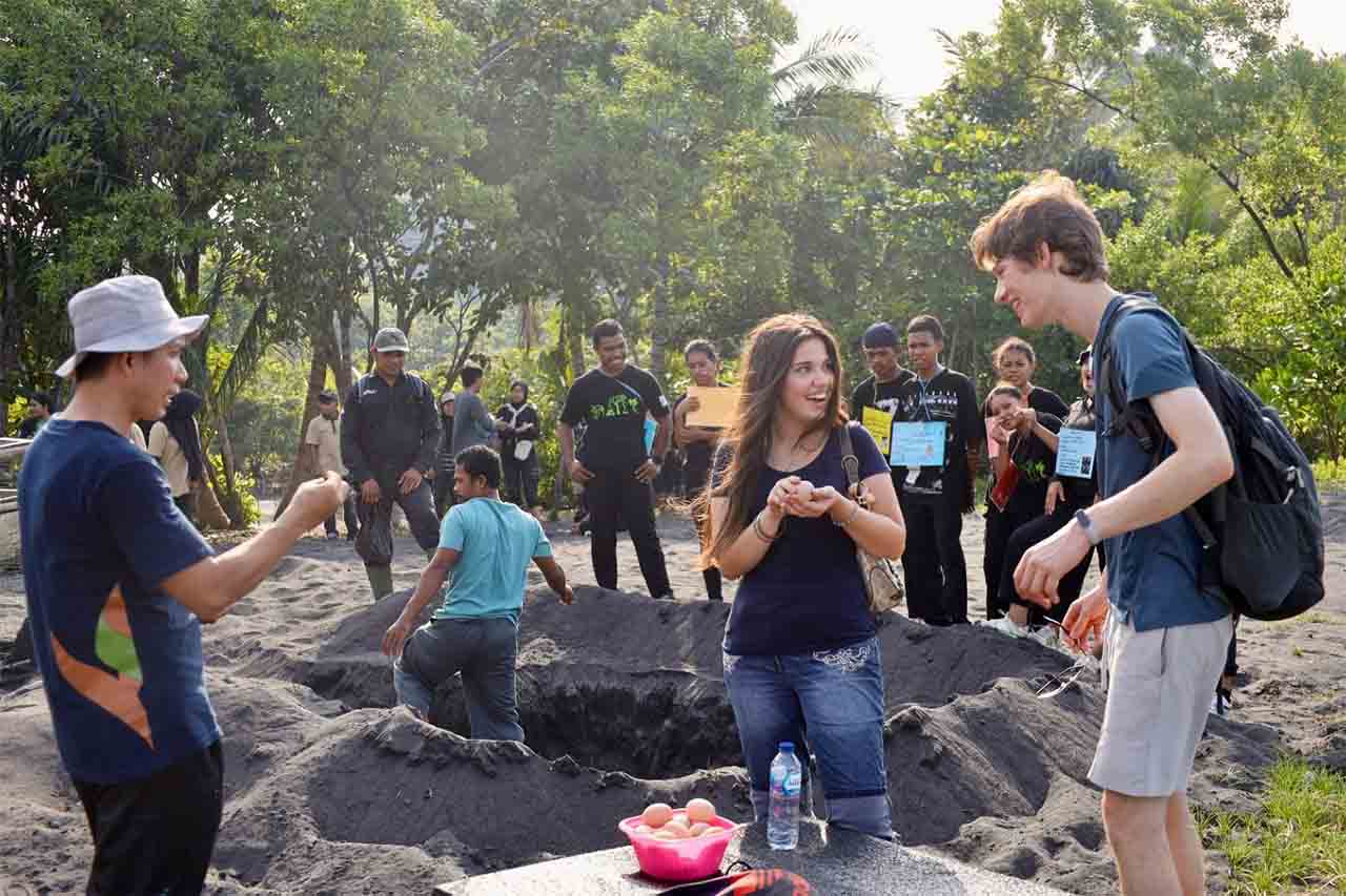 Dalam rangkaian kegiatan, peserta bersama masyarakat lokal dan relawan internasional dari Evangelical Mission in Solidarity, Ecumenical Youth Volunteers Programme (EMS-EYVP) asal Jerman yakni Aya dan Cedric melakukan penanaman mangrove serta penanaman telur Burung Mamoa di lokasi semi-alami.