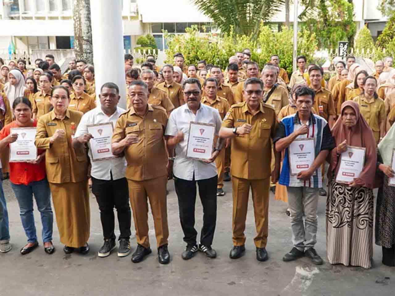 Bantuan tersebutt diserahkan Wali Kota Ambon, Bodewin M Wattimena saat apel pagi ASN, di pelataran Balai Kota Ambon, Senin (6/10/2025).