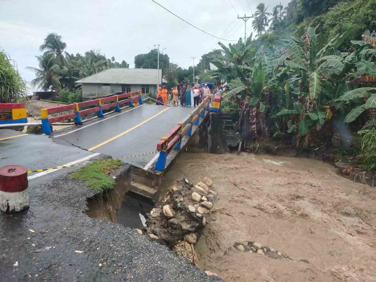 Jembatan yang berada di Desa Bega, Kecamatan Sulabesi Tengah itu ambruk setelah air yang meluap.
