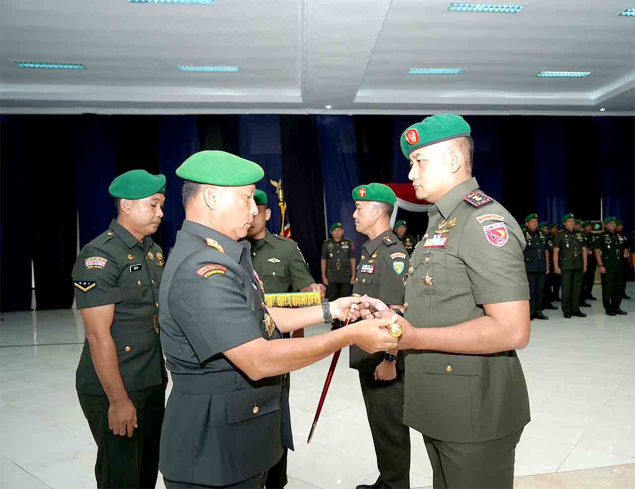 Upacara serah terima jabatan (sertijab) dipimpin Komandan Korem 151/Binaiya, Brigjen TNI Raffles Manurung di Aula Makorem 151/Binaiya, Ambon, Rabu (8/10/2025).