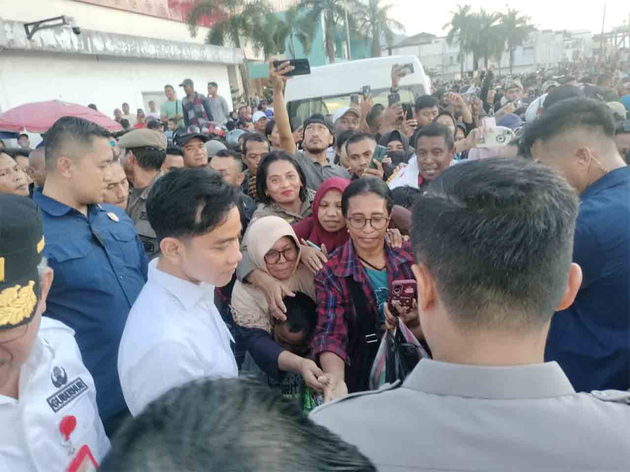 Pedagang Pasar Mardika Rebutan Salami Wapres Gibran