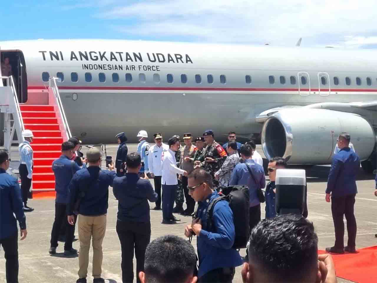 Wapres tiba di Bandara Pattimura Ambon, Selasa 14/10/2025) pukul 12.00 WIT dengan menggunakan pesawat khusus milik TNI Angkatan Udara Boeing 738 dengan nomor registrasi A-7309. Pesawat tersebut dipiloti Letkol Pnb Erik.