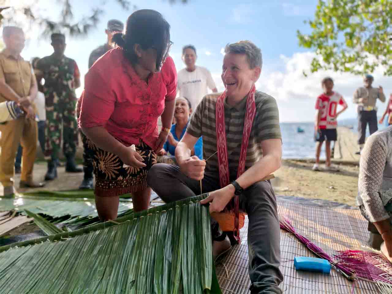 Ia juga langsung kegiatan Sekolah Perempuan yang kini menjadi agen perubahan sosial di berbagai desa pesisir dan kepulauan. Dubes Rod Brazier bahkan juga mencoba menganyam atap yang dibuat oleh anggota Sekolah Perempuan.