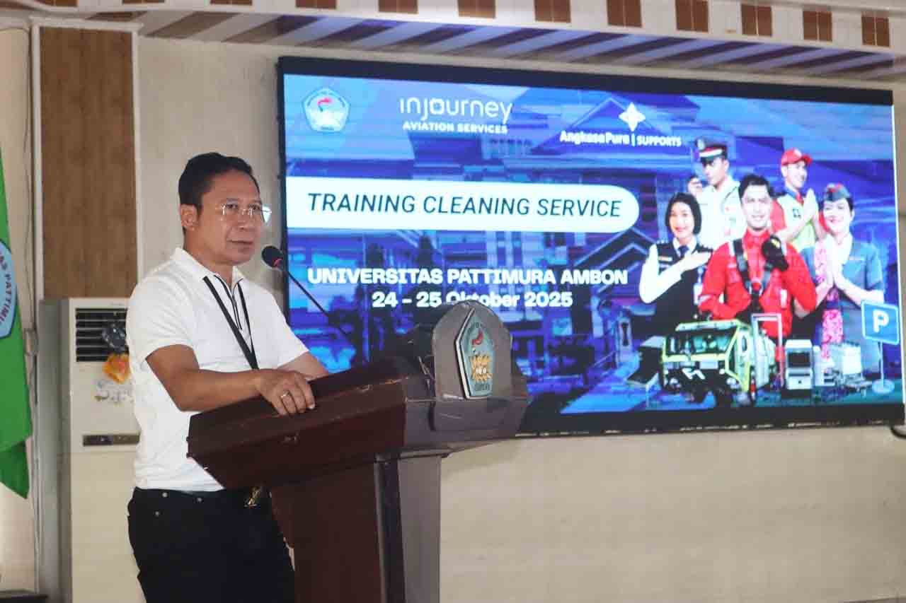 AMBON, MalukuTerkini.com - Universitas Pattimura (Unpatti) menggandeng PT Angkasa Pura Indonesa Cabang Ambon menggelar Training Cleaning Service di Aula Rektorat Unpatti, Jumat (24/10/2025).