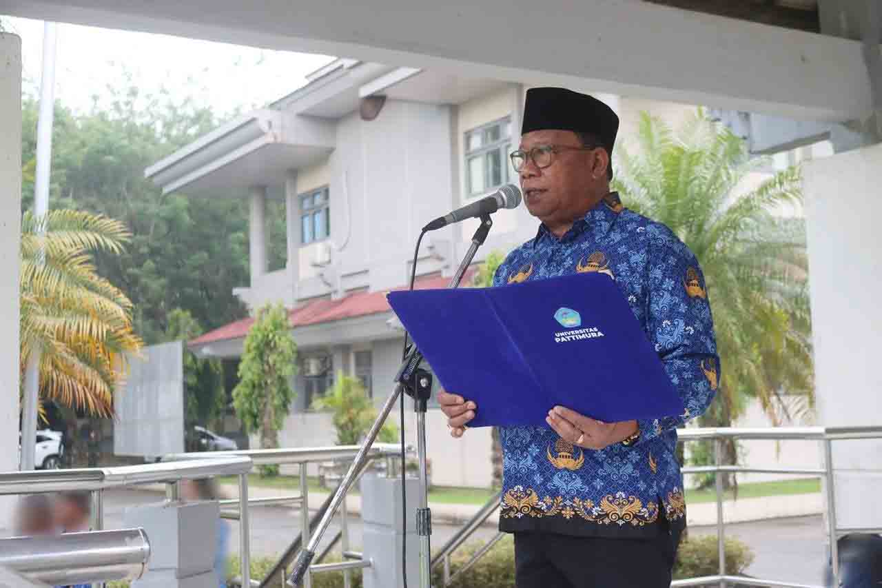Rektor Unpatti Prof. Dr. Fredy Leiwakabessy,M.Pd bertindak sebagai inspektur upacara yang bertemakan “ Pemuda Pemudi Bergerak, Indonesia Bersatu”.
