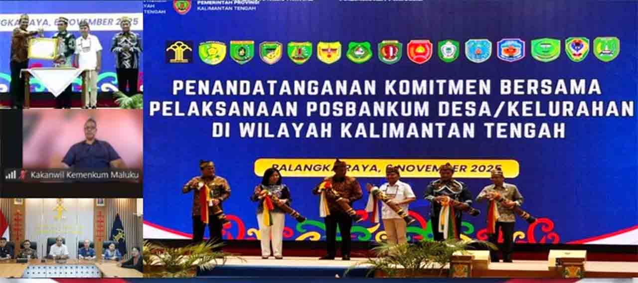 AMBON, MalukuTerkini.com - Kantor Wilayah (Kanwil) Kementerian Hukum (Kemenkum) Maluku menunjukkan komitmen nyata dalam memperkuat akses keadilan bagi masyarakat melalui partisipasinya dalam kegiatan Peresmian Pos Bantuan Hukum (Posbankum) dan Pembukaan Pelatihan Paralegal Desa/Kelurahan Wilayah Kalimantan Tengah (Kalteng) yang digelar secara virtual, Kamis (6/11/2025).