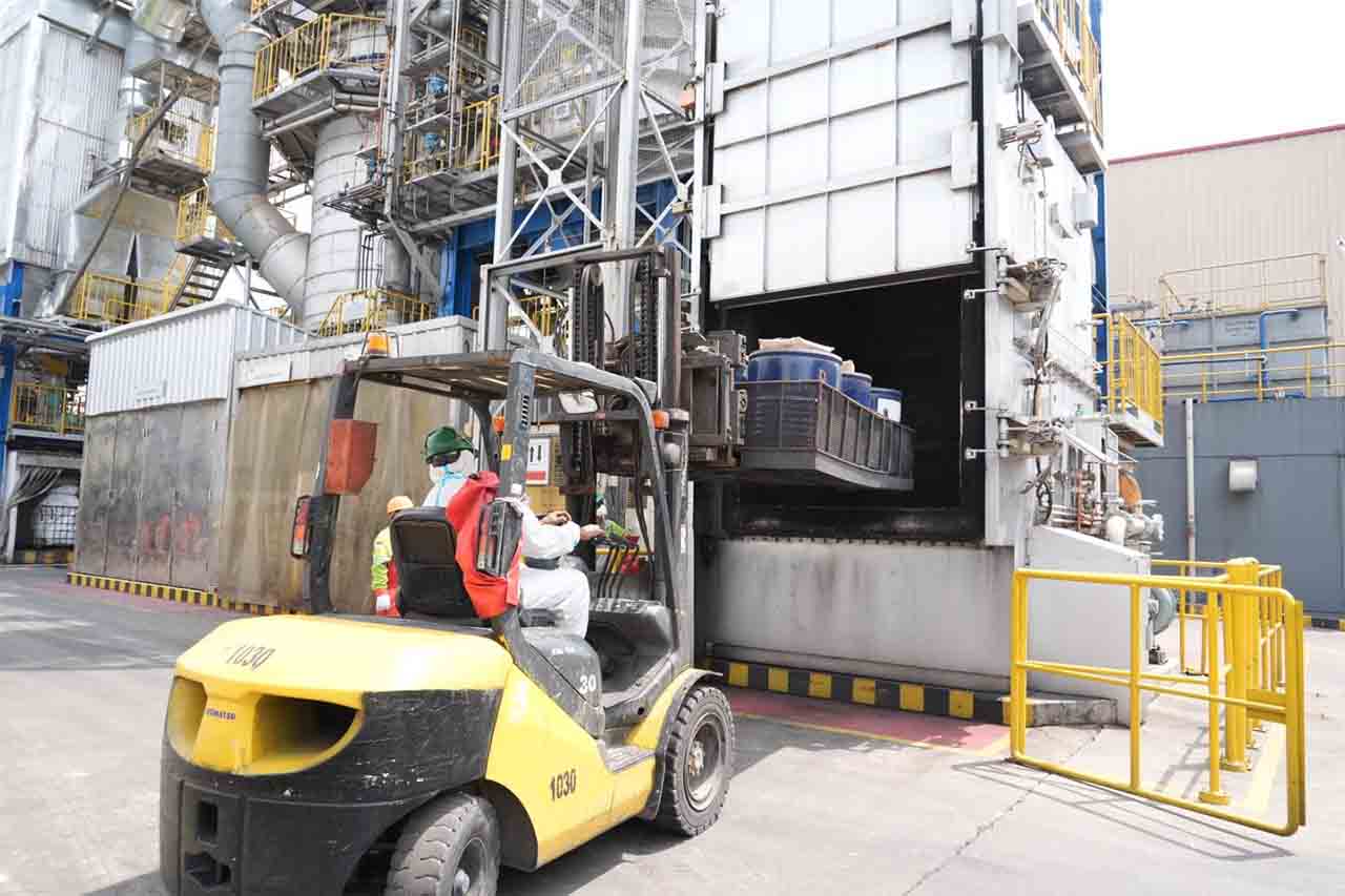 Deputi Pengendali Pencemaran dan Kerusakan Lingkungan KLH/BPLH, Rasio Ridho Sani, mengatakan pemusnahan dilakukan dengan menggunakan insinerator tipe vertical stoker yang dilengkapi Peralatan Pengendalian Emisi Udara dan dengan Continous Emission Monitoring System (CEMS).