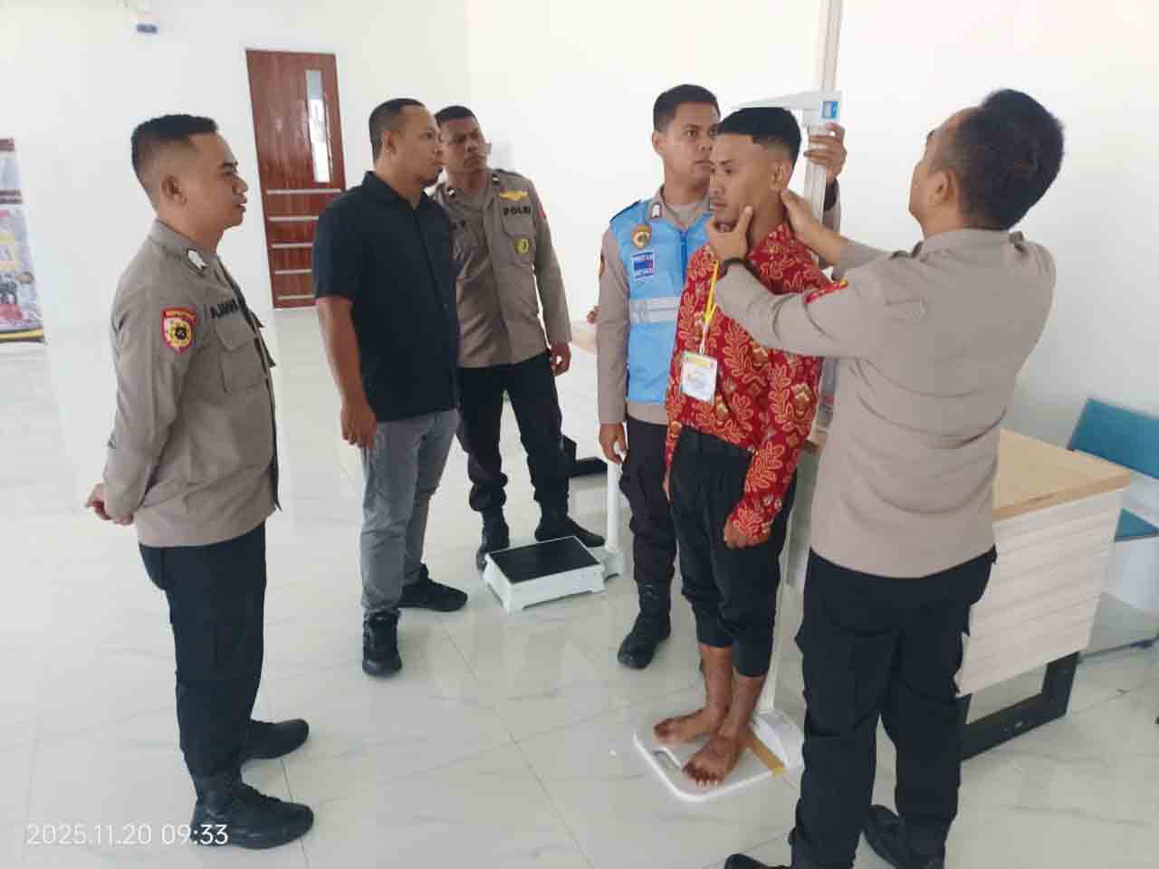 Proses rikmin awal penerimaan Bintara Brimob Polri dilaksanakan di ruang aula RTMC Direktorat Lalulintas Polda Maluku, Tantui, Ambon, Kamis 20/11/2025.
