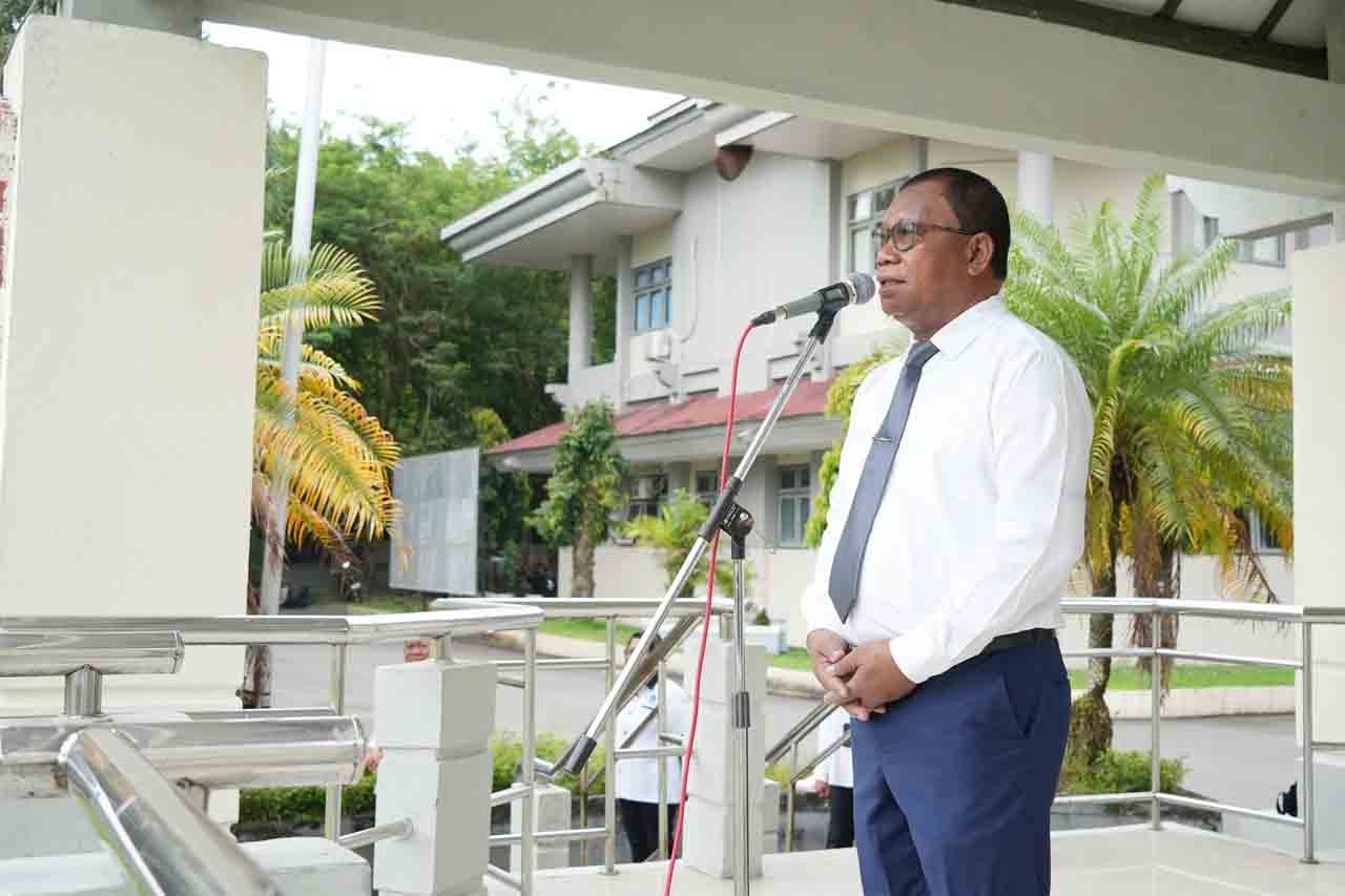 AMBON, MalukuTerkini.com – Rektor Universitas Pattimura (Unpatti) Prof Dr Fredy Leiwakaabessy, MPd memimpin apel kerja mengawali Tahun 2026 di Lapangan Upacara Unpatti, Senin (12/1/2026).
