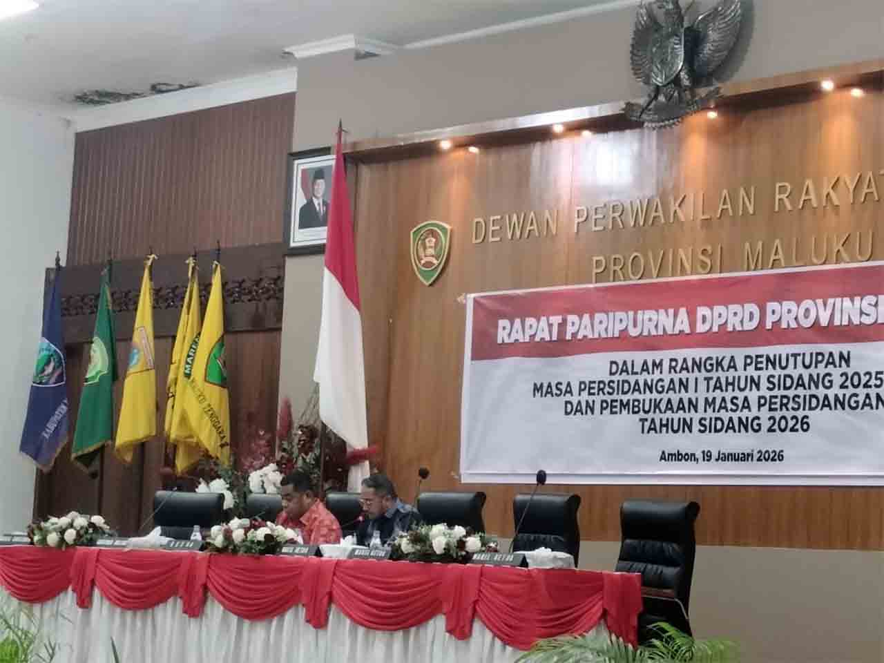 AMBON, MalukuTerkini.com – DPRD Provinsi Maluku, menggelar Rapat Paripurna dalam rangka penutupan masa persidangan I tahun sidang 2025-2026 dan pembukaan masa persidangan II tahun sidang 2026, Senin (19/1/2026).