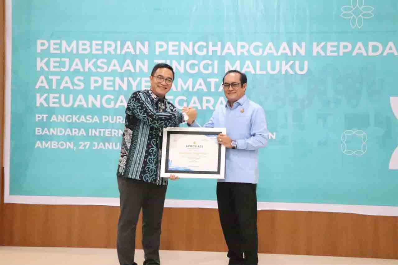 Atas capaian itu, CEO Region V PT Angkasa Pura Indonesia, Handy Heryudhitiawan, memberikan piagam penghargaan kepada Kepala Kejaksaan Tinggi Maluku, Rudy Irmawan.