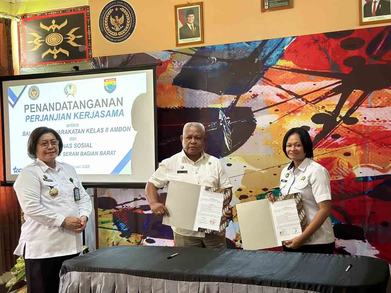 Penandatangan Perjanjian Kerja Sama dilakukan di Aula Bapas Ambon, Rabu (11/2/2026),