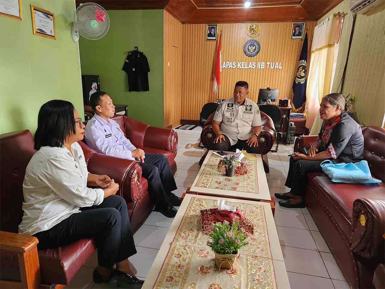 Mengawali rangkaian kegiatan, Tim Kanwil menyambangi Lapas Kelas IIB Tual. Kedatangan tim disambut langsung oleh Kepala Lapas (Kalapas) Kelas IIB Tual, Nurchalis Nur.