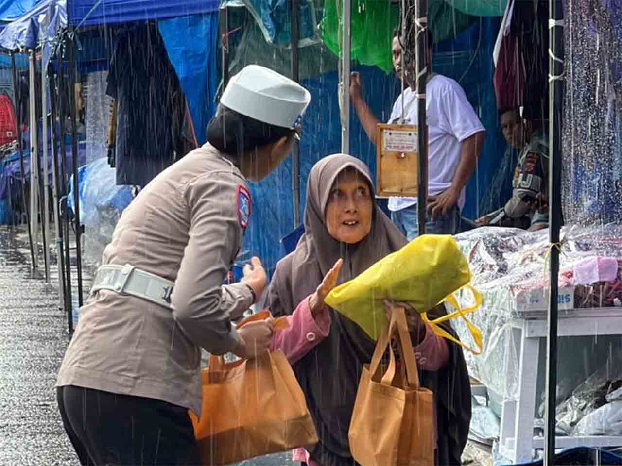 Aksi sosial tersebut berlangsung di tengah cuaca hujan deras. Meski demikian, semangat berbagi para personel Ditlantas Polda Maluku tidak surut dalam menyapa masyarakat dan membantu para pengguna jalan yang masih berada di perjalanan menjelang waktu berbuka puasa.