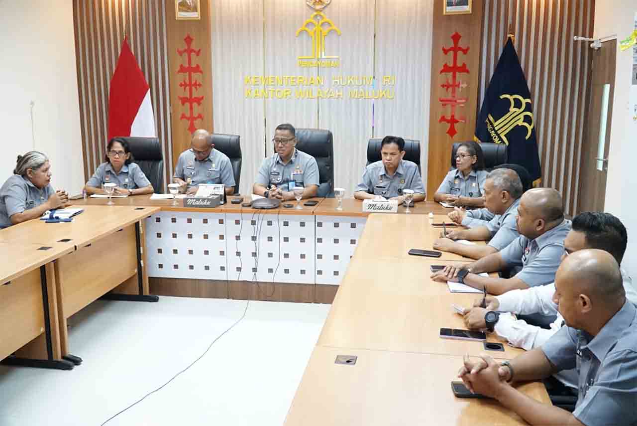 AMBON, MalukuTerkini.com – Kantor Wilayah Kementerian Hukum Maluku menggelar rapat evaluasi mingguan pelaksanaan Pos Bantuan Hukum (Posbankum) desa/kelurahan/ohoi se-Provinsi Maluku, Senin (23/2/2026) yang dipimpin langsung oleh Kepala Kantor Wilayah Kementerian Hukum Maluku, Saiful Sahri.