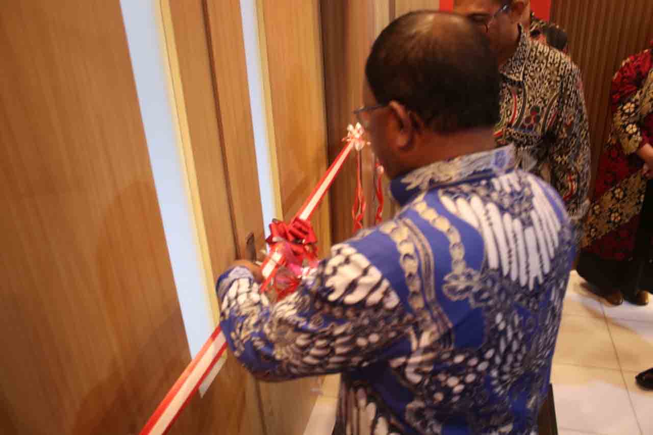 Prosesi peresmian ditandai dengan penandatanganan prasasti dan pengguntingan pita oleh Rektor didampingi Sekda Sadali Ie dan Kepala Kantor Wilayah Kementerian Hukum Saiful Sahri.