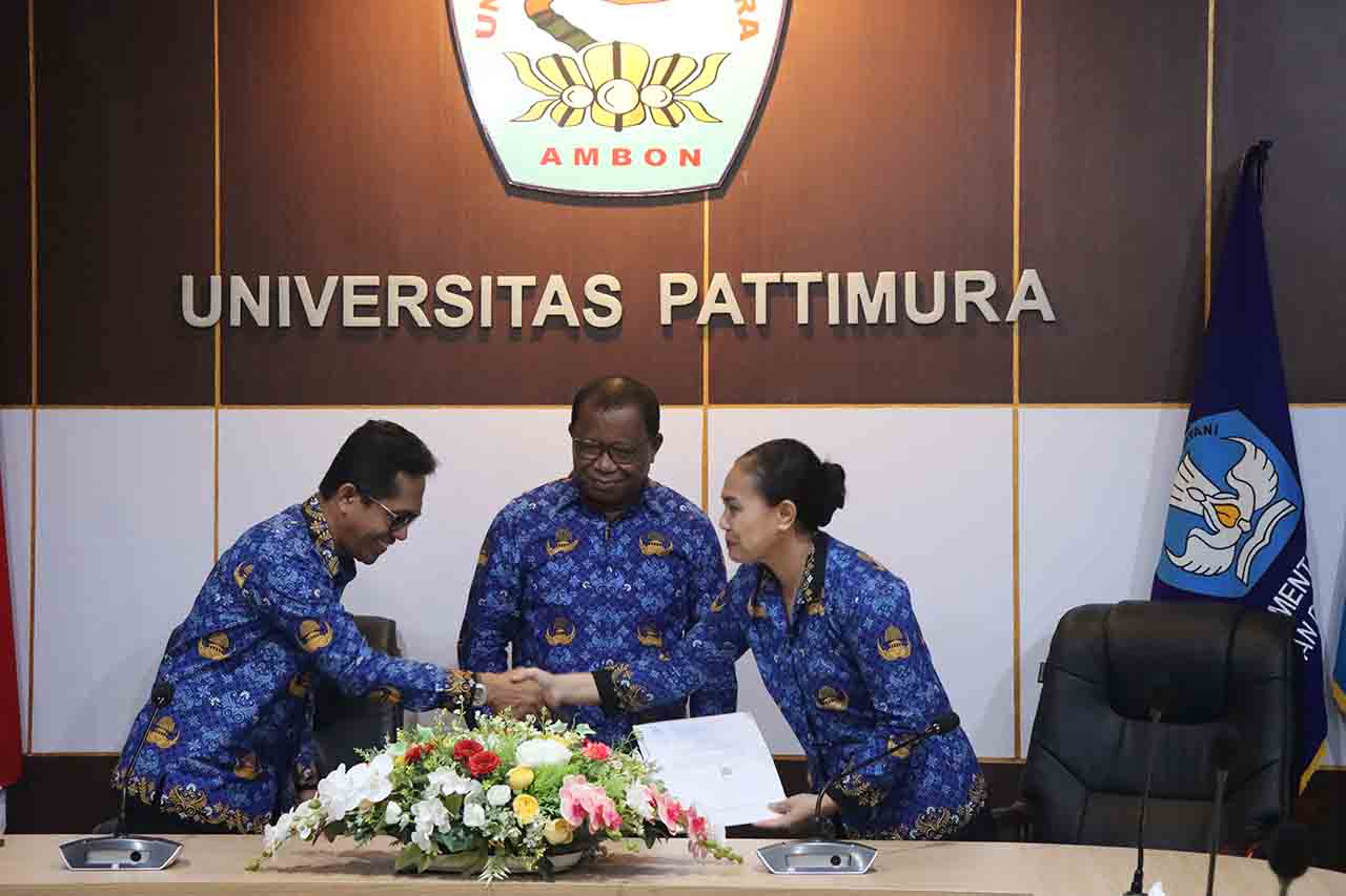 Salinan Surat Keputusan (SK) Menteri Pendidikan Tinggi, Sains dan Teknologi (Mendiktisaintek) tersebut diserahkan oleh Plt Kepala Lembaga Layanan Pendidikan Tinggi (LLDIKTI) Wilayah XII Prof Dr Saiful Deni SAg MSi kepada RektorUnpatti Prof Dr Fredy Leiwakabessy didampingi dekan Fakultas Kedokteran (FK) dr Farah Christina Noya, MHPEd PhD. di Kampus Unpatti Ambon, Kamis (26/2/2026).