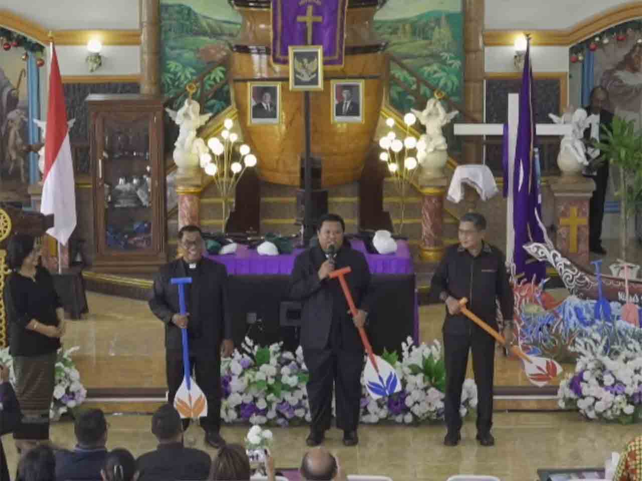 Pembukaan Sidang ke-14 Klasis GPM Pulau Ambon Timur ditandai dengan simbolisasi dayung perahu oleh Ketua MPH Sinode GPM Pendeta Sacharias Izack Sapulette, bersama Wali Kota Ambon Bodewin M Wattimena dan Ketua Klasis GPM Pulau Ambon Timur  Pendeta Hendrik James Elath.