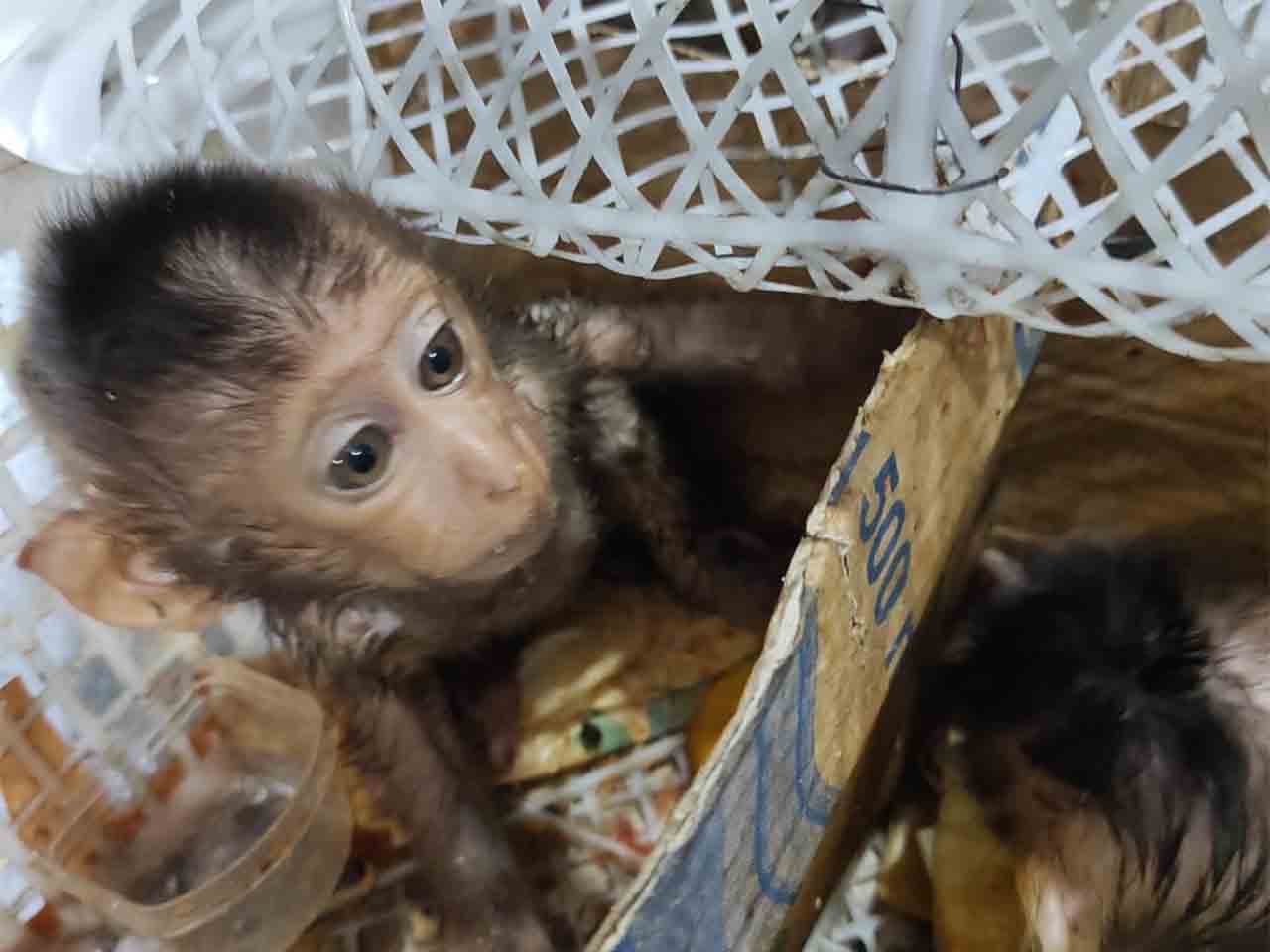 Tim gabungan mendapati dua ekor elang dewasa dan lima ekor anakan dimasukkan ke dalam satu kardus. Sementara itu, 13 ekor anak monyet ditemukan di dalam tiga keranjang.