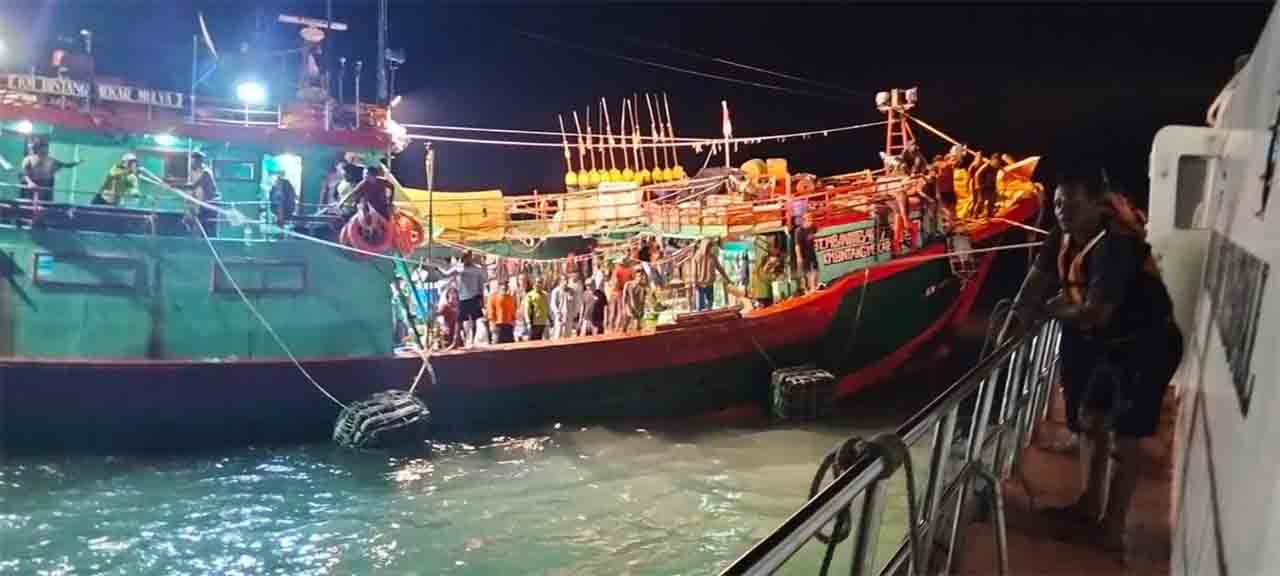 “Tim SAR Gabungan yang tiba di lokasi pada pukul 19.30 WIT kemudian melakukan proses evakuasi terhadap 24 orang korban ke RB 223. Sementara itu, 2 orang korban yaitu nahkoda dan KKM memilih tetap berada di kapal untuk menunggu kapal perusahaan yang sedang menuju lokasi kejadian,” katanya.